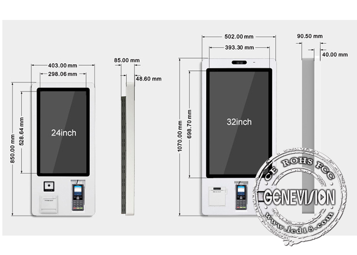 This touch screen self payment kiosk can be widely used in Supermarket and Restaurant, also the wall mount payment kiosk can be used in Cinema, fast food shops, stores, Mcdonald's, Pizza Hut and parking lot.