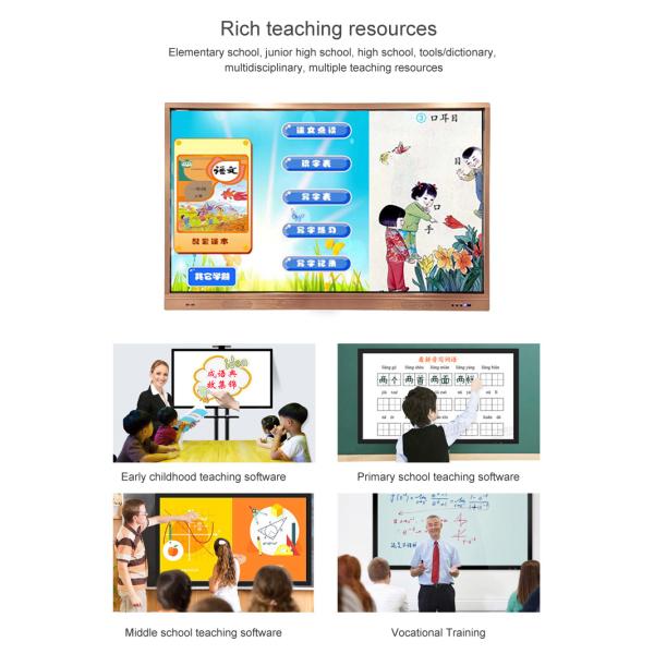 Hot sale size is from 55inch to 86inch, 100inch is also on sale, but large demand is from 65inch to 86inch, When apply in School,front tempered glass can be anti-glare type, so study sitting on left and right side also can enjoy the screen quite easily and see content on the screen clearly.